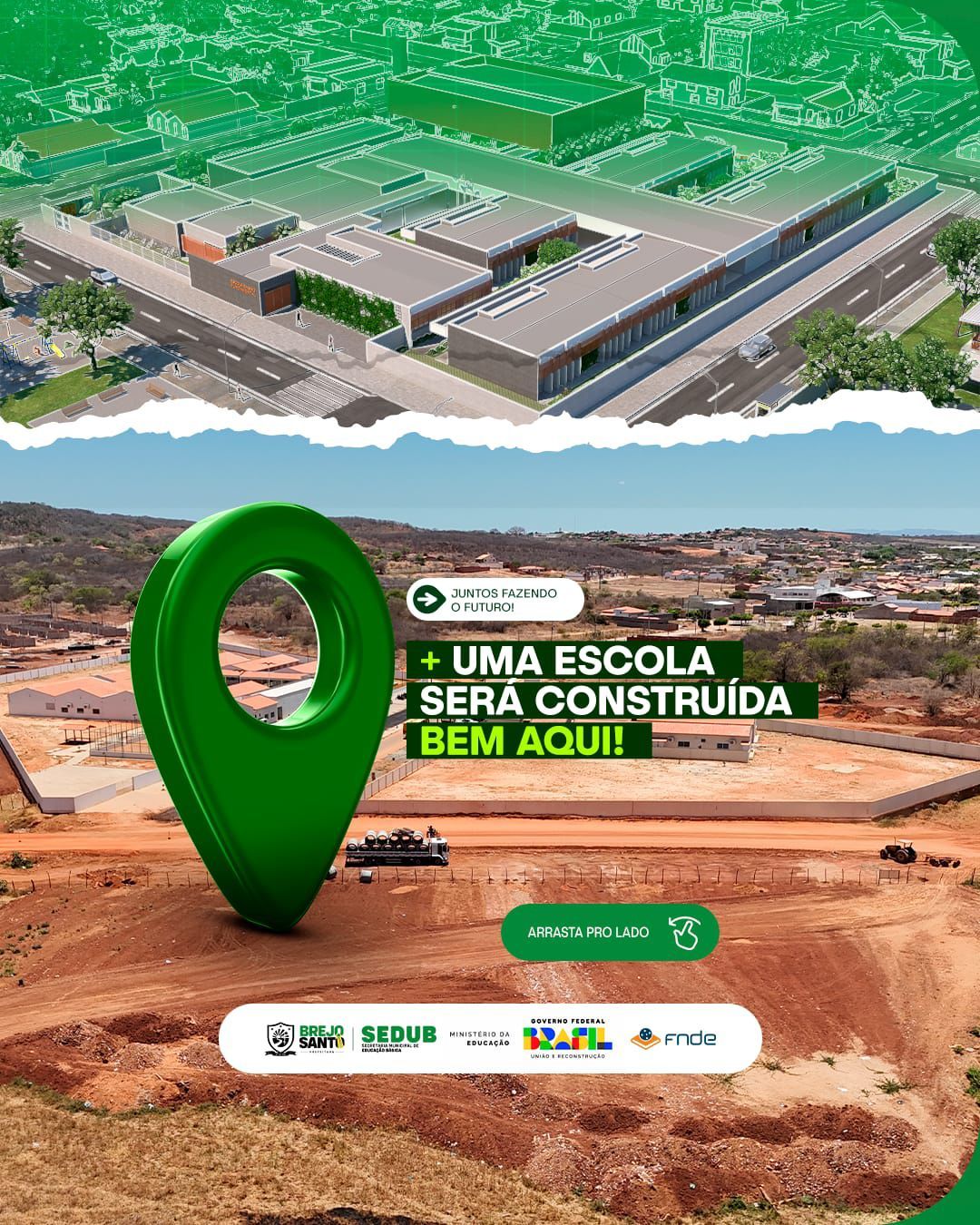 A Prefeitura de Brejo Santo, em parceria com o Governo Federal, anuncia o início da construção de uma nova Escola de Ensino Fundamental, que será erguida no Complexo Educacional de Brejo Santo — área que se consolida como um grande polo de educação e formação no município.